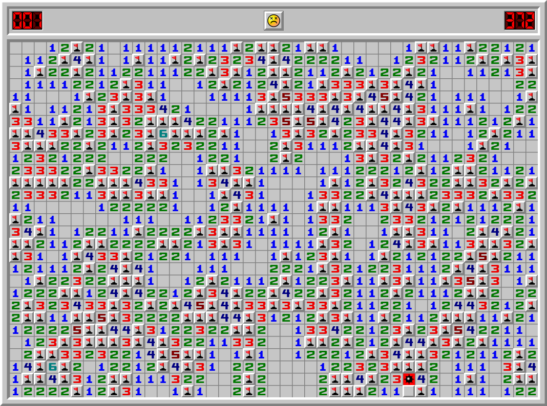 | Heute 04:36 | im the unluckiest minesweeper player that keeps accidently clicking a mine even tho i was gonna flag it and sometimes i constantly dont get a opening. prove me wrong | |
