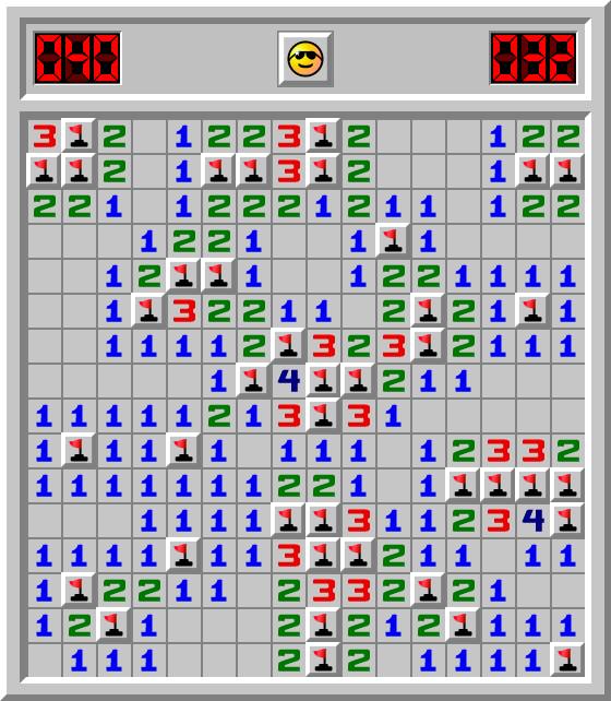 ponder 📦 hat ein Minesweeper Spiel Fortgeschrittene in 32.075 Sek. gewonnen