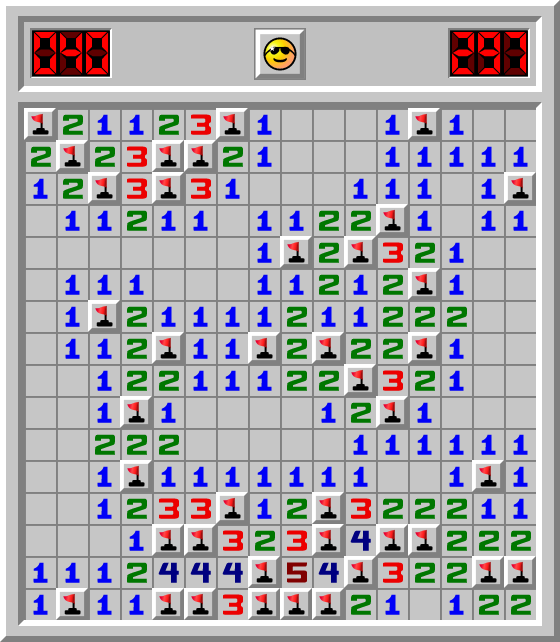 ponder 📦 hat ein Minesweeper Spiel Fortgeschrittene in 297.587 Sek. gewonnen