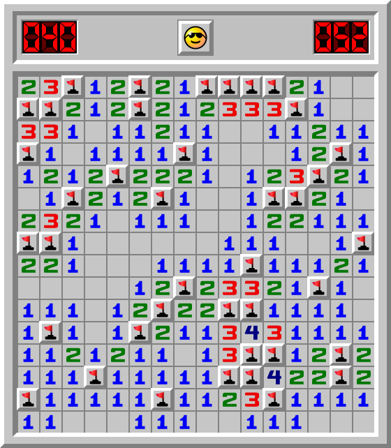 ponder 📦 hat ein Minesweeper Spiel Fortgeschrittene in 52.610 Sek. gewonnen