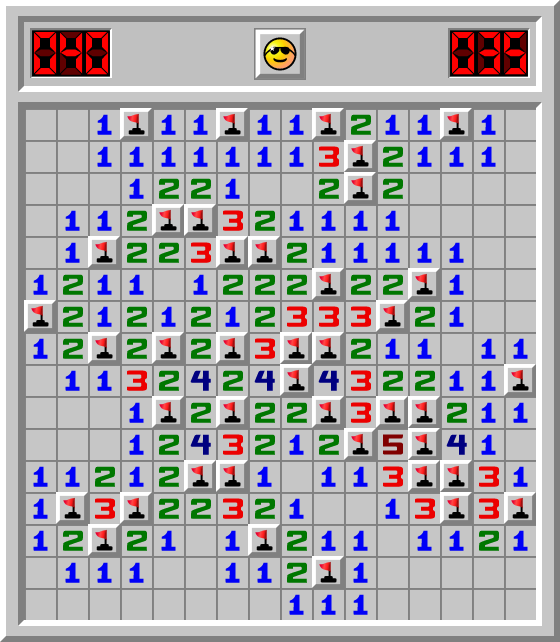 ponder 📦 hat ein Minesweeper Spiel Fortgeschrittene in 35.106 Sek. gewonnen
