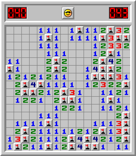 Kaboom hat ein Minesweeper Spiel Fortgeschrittene in 43.672 Sek. gewonnen