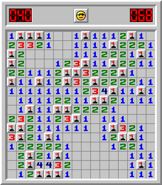 Kaboom hat ein Minesweeper Spiel Fortgeschrittene in 68.256 Sek. gewonnen