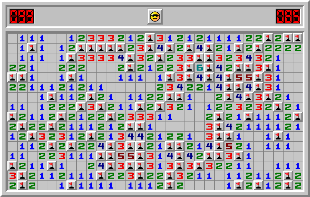 Zqf hat ein Minesweeper Spiel Profis in 85.051 Sek. gewonnen