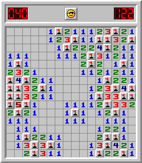 Agent Ulrich hat ein Minesweeper Spiel Fortgeschrittene in 122.496 Sek. gewonnen