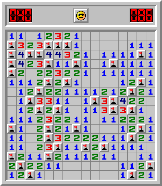 Agent Ulrich hat ein Minesweeper Spiel Fortgeschrittene in 86.086 Sek. gewonnen