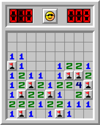 盈ying a fini le jeu Démineur sur le niveau Débutant en 8.923 sec