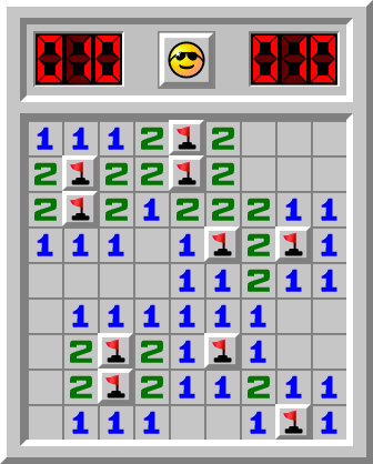 盈ying a fini le jeu Démineur sur le niveau Débutant en 10.923 sec