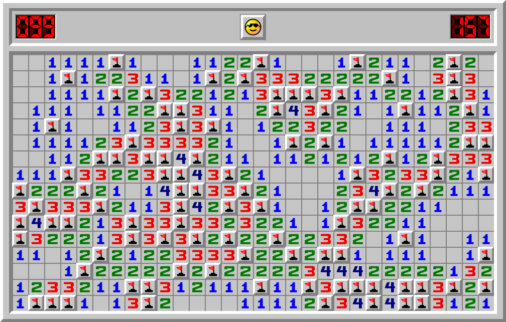 YooonY a fini le jeu Démineur sur le niveau Expert en 157.190 sec