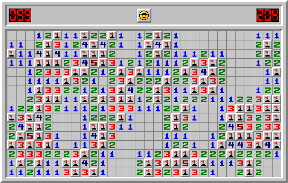 meR a fini le jeu Démineur sur le niveau Expert en 204.796 sec
