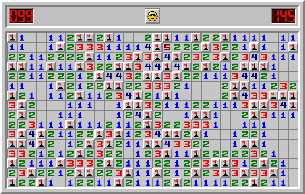 BirdFurniture solved a Minesweeper Expert game in 145.071 sec