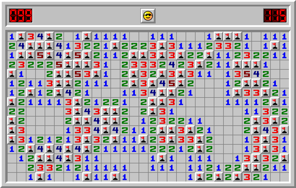 BirdFurniture solved a Minesweeper Expert game in 115.080 sec