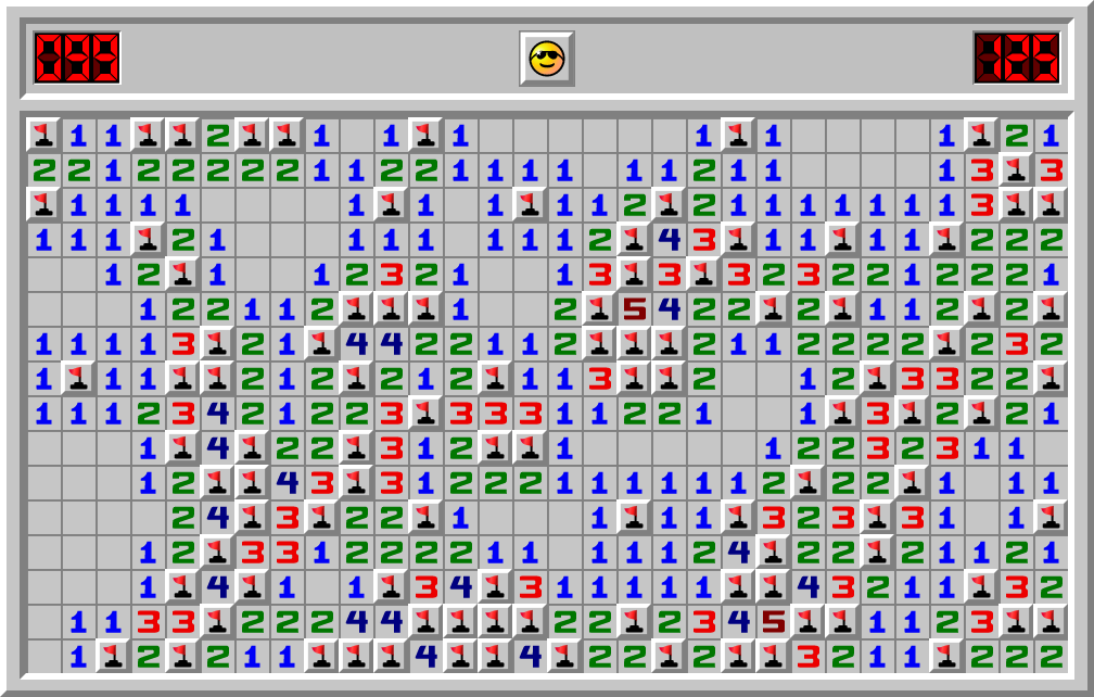 Time: 125.076 sec 3BV: / 183 3BV/s: 1.4631Clicks: 211+44Efficiency: 72%%