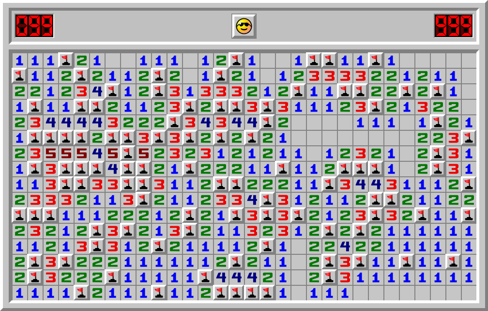 AlphaVorteX solved a Minesweeper Expert game in 1531.401 sec