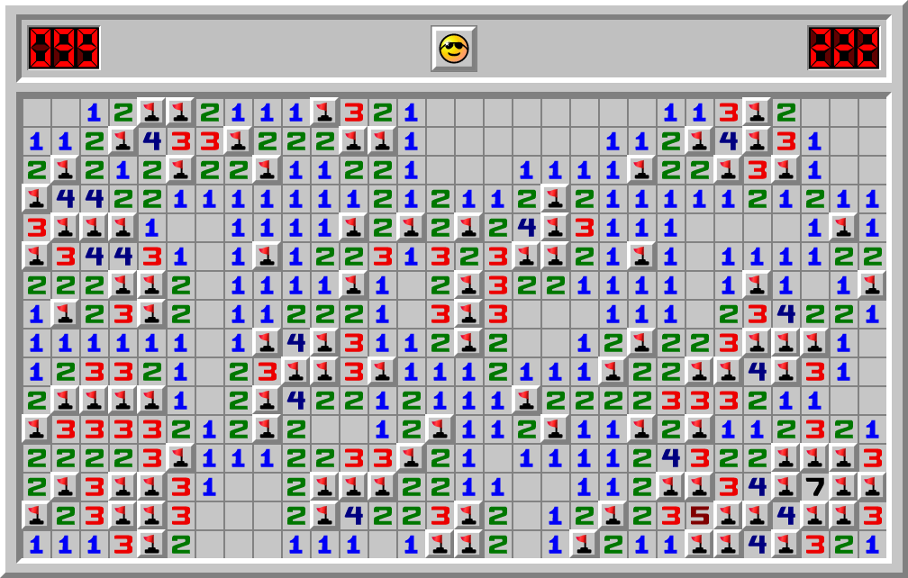 team worm 는 지뢰찾기 상급을 222.105초만에 끝냈습니다
