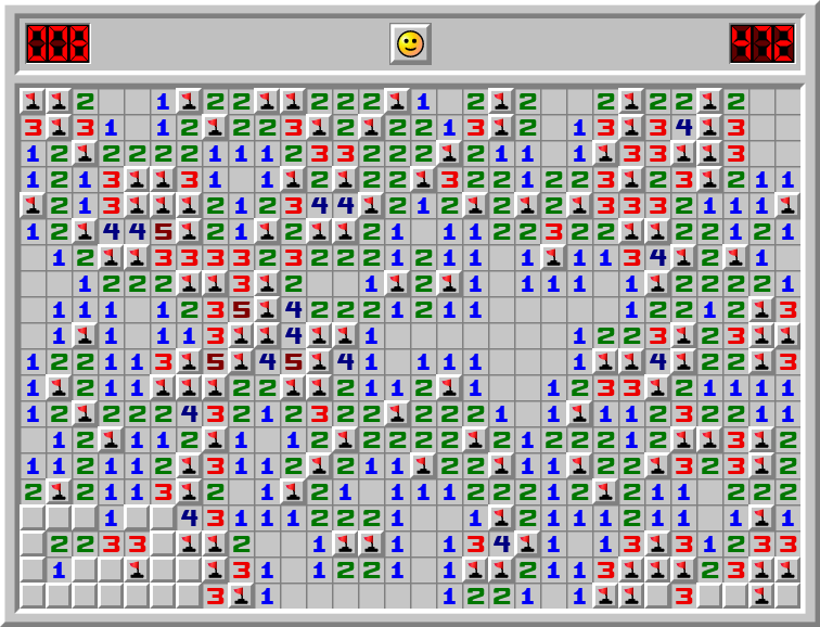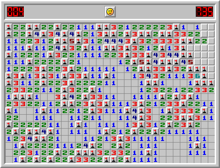 Some Expert games with a high mine count ending.
