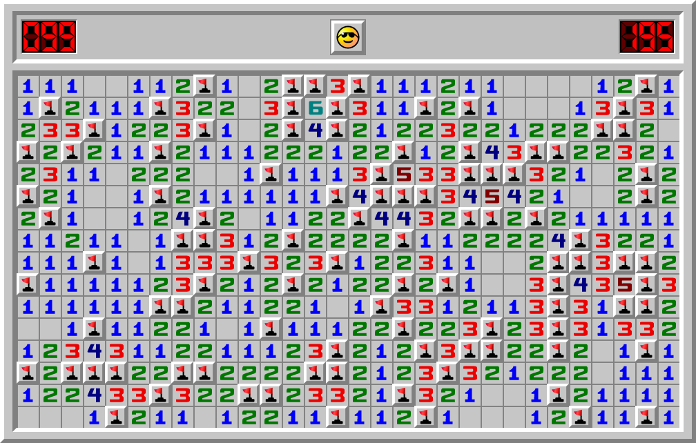 Aris terminou o jogo Campo Minado no modo Especialista durante 195.857 seg