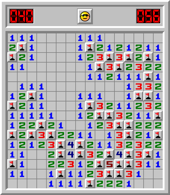 maid terminou o jogo Campo Minado no modo Intermédio durante 56.432 seg
