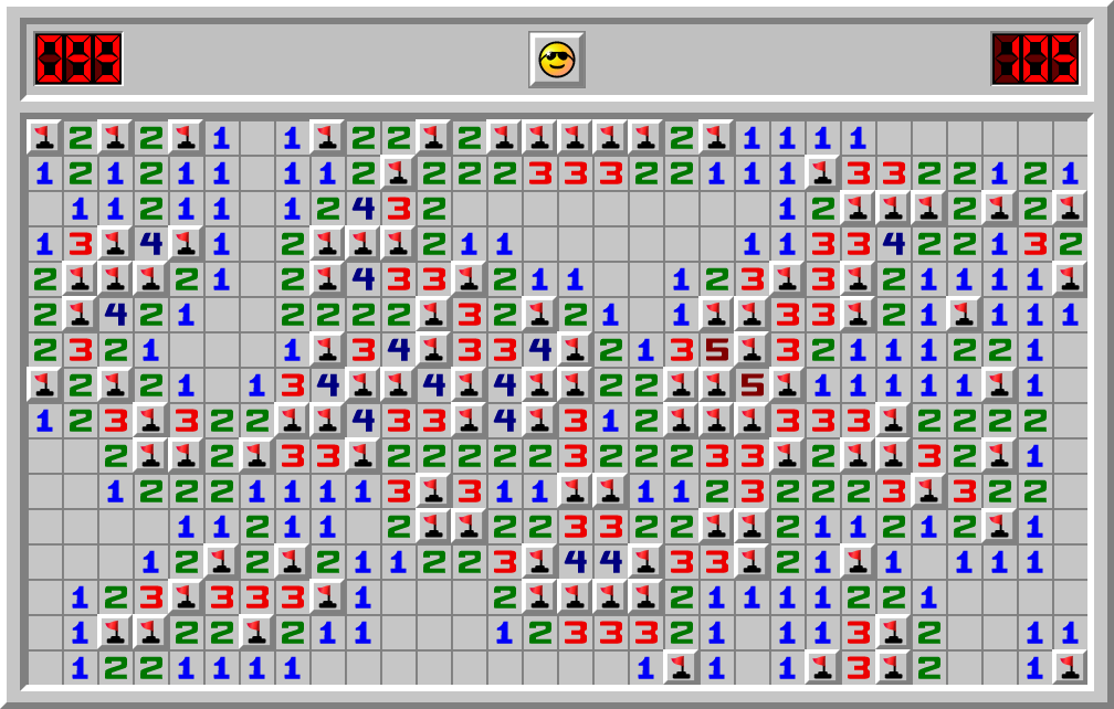 KAMO прошел игру сапер на сложности Профессионал за 105.002 сек
