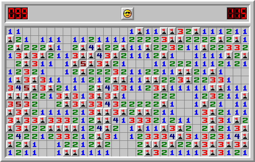 KAMO прошел игру сапер на сложности Профессионал за 115.892 сек