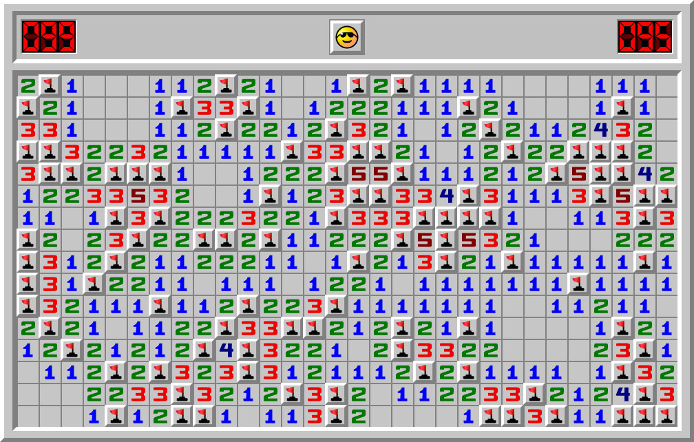 KAMO прошел игру сапер на сложности Профессионал за 95.475 сек